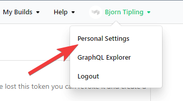 In Buildkite, select your Account Name and click Personal Settings.