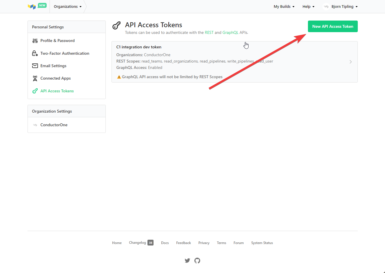 Click Create New API Access Token, then carefully copy and save the token.