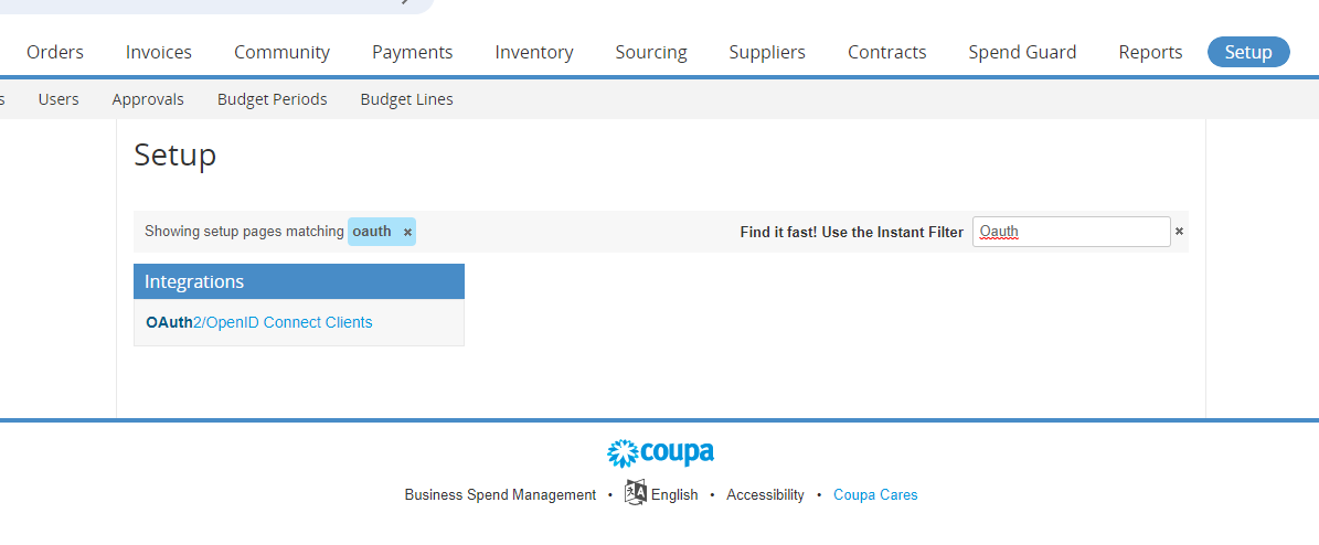 In the Coupa control panel, click Setup.