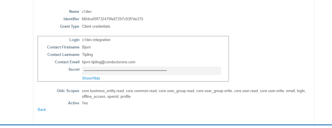 Click Show/Hide to view your client secret. Copy and save the client secret.