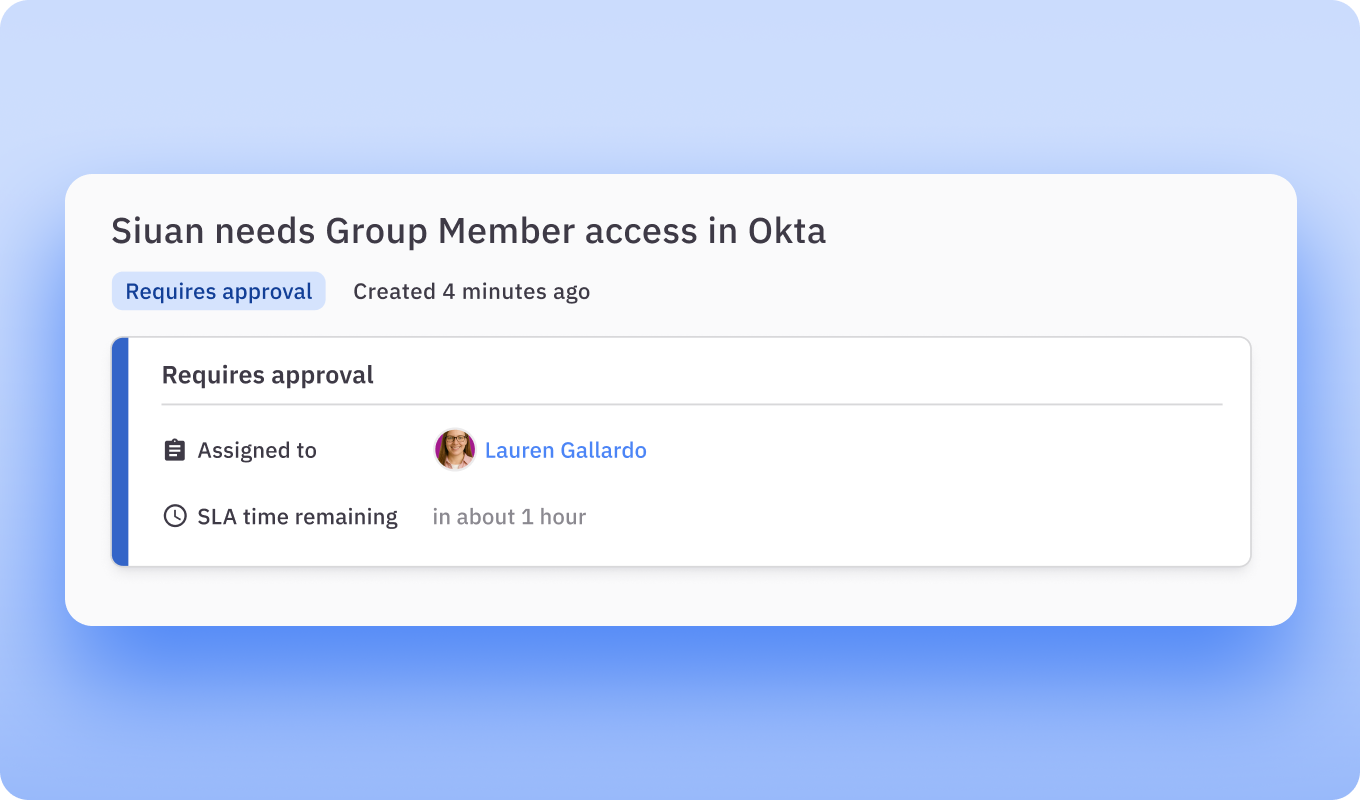 It’s a simple, powerful way to make sure your people get the access they need without having to ping managers on PTO or track down busy app owners in Slack.