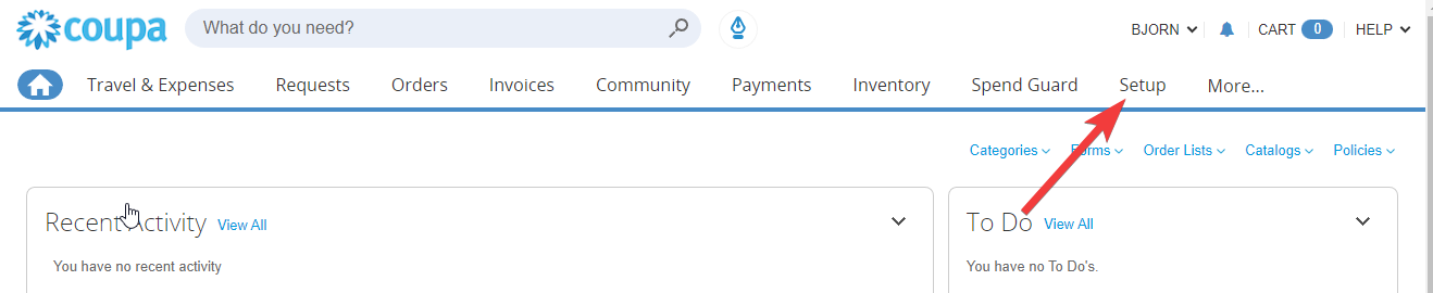 In the Coupa control panel, click Setup.